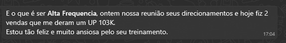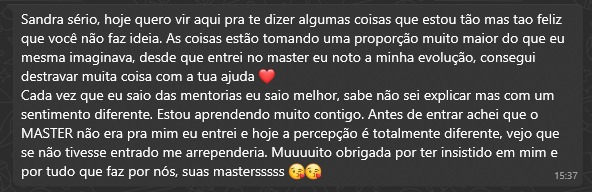 Criadora do Mastermind Alta Frequência, Sandra idealizou esse programa ao perceber que muitas mulheres já possuem conhecimento e resultados, mas ainda se sentem travadas para se posicionar, cobrar o que valem ou transformar tudo o que sabem em uma vida com realização.